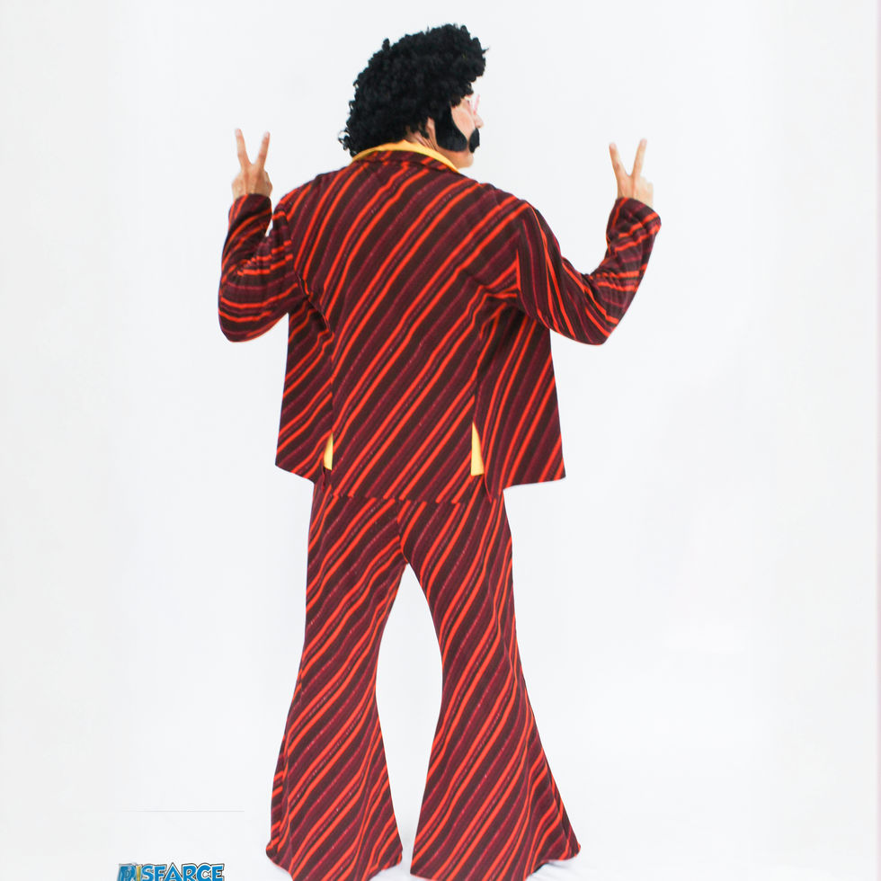 Fantasia acompanha calça, camisa, blaze, peruca e colar.