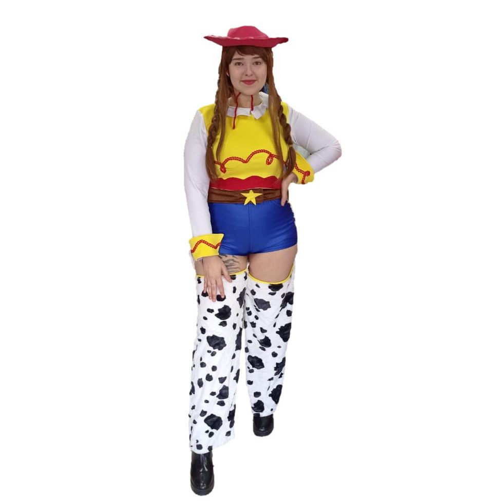 Fantasia acompanha shorts, calça com cinto, camisa e chapéu.